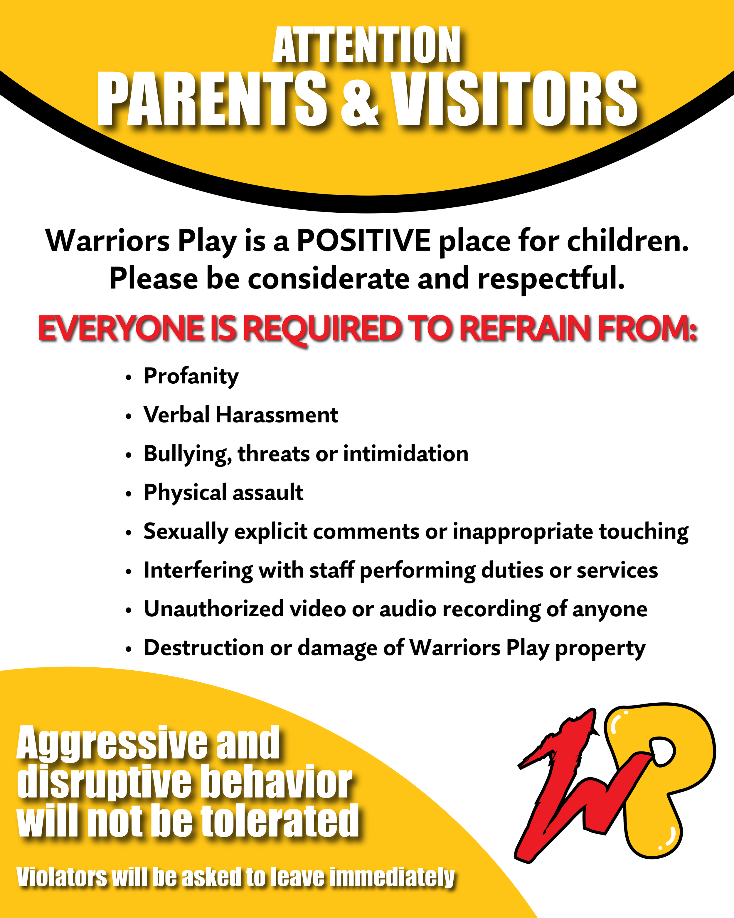 Warriors Play reserves the right to update pricing, hours, benefits, or policies with prior notice.